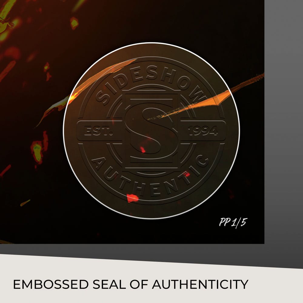 "More trouble than you can imagine ... especially when he's ... the servant of Satan!" Sideshow presents the Cosmic Ghost Rider Fine Art Print, a wicked Marvel art print by artist Maxx Lim. Flames roar and scorched tires carve a malevolent path as Ghost Rider pursues an ill-fated soul. Wielding his fiery chain whip, this infernal antihero cuts a frightening figure on his motorbike. Can you smell the leather and rubber? Everything burns - especially when there's vengeance involved. Originally created as a variant cover for Cosmic Ghost Rider #4 (2018), written by Donny Cates for Marvel Comics, this Ghost Rider collectible is now available to fans as an unframed giclée print or in a custom framed presentation. Each Cosmic Ghost Rider Fine Art Print features an embossed Sideshow Seal of Authenticity as part of the limited edition of 150 pieces. Learn the true meaning of hell when you bring home the Cosmic Ghost Rider Fine Art Print by Maxx Lim today!