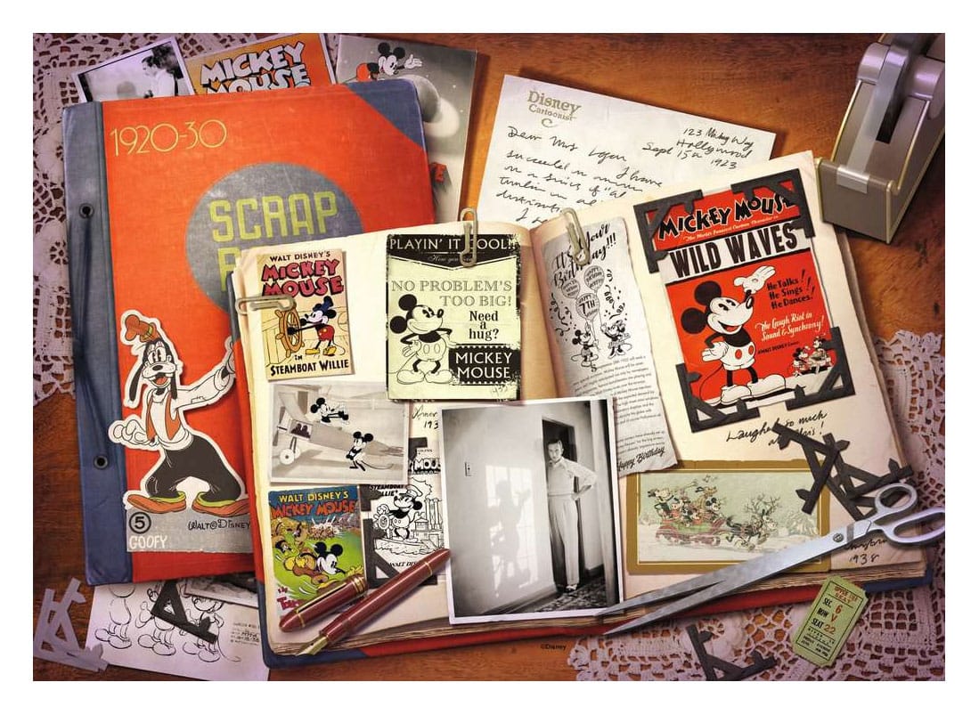 Step back in time to the magical world of Mickey Mouse during the 1920s and 1930s with this captivating 1000 piece jigsaw puzzle. This meticulously crafted puzzle piece by piece, captures the essence of the golden age of animation and the iconic character that started it all - Mickey Mouse. The scrapbookll brings to life scenes from some of Mickey's earliest and most beloved cartoons, such as "Steamboat Willie," With 1000 pieces to connect, this puzzle is a labour of love and a tribute to the enduring charm of Mickey Mouse.