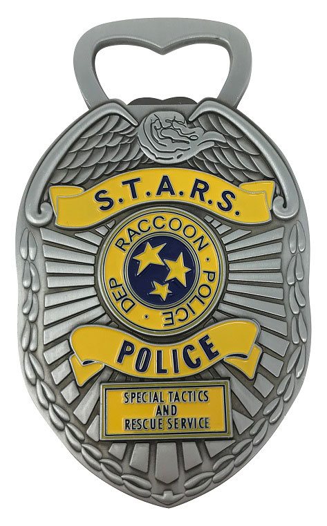 Resident Evil metal bottle opener, magnetic for easy storage on the fridge door after use.