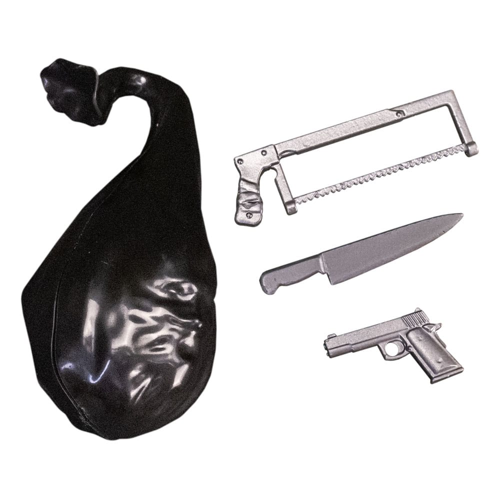 - Comes with his petrifying trash bag of terror, equipped to hold his 3 weapons of choice.