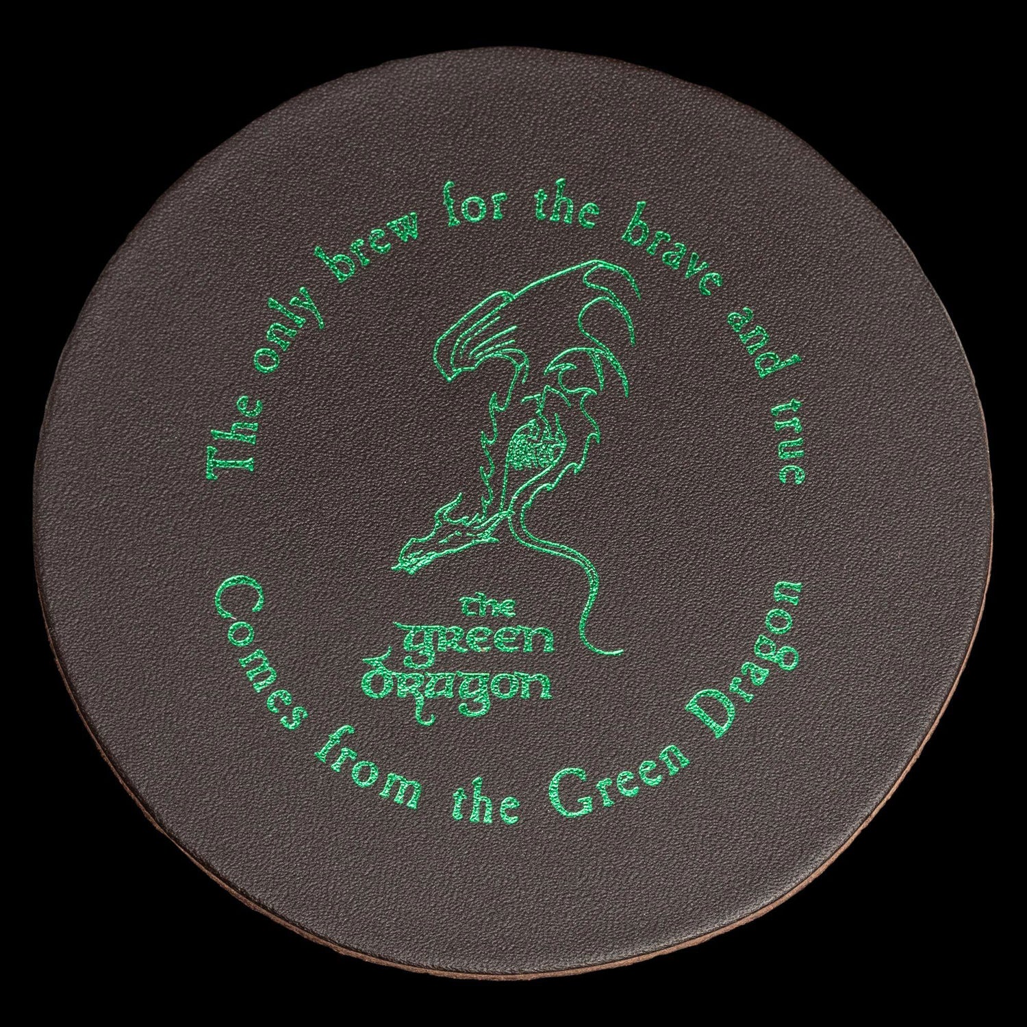 The Green Dragon Coaster set includes a set of 4 individually detailed coasters inside a beautiful printed presentation box. Made from hand-dyed and polished vegetable-tanned leather with foil detailing, these coasters are a natural product with unique colour and texture variations. No two sets are the same!